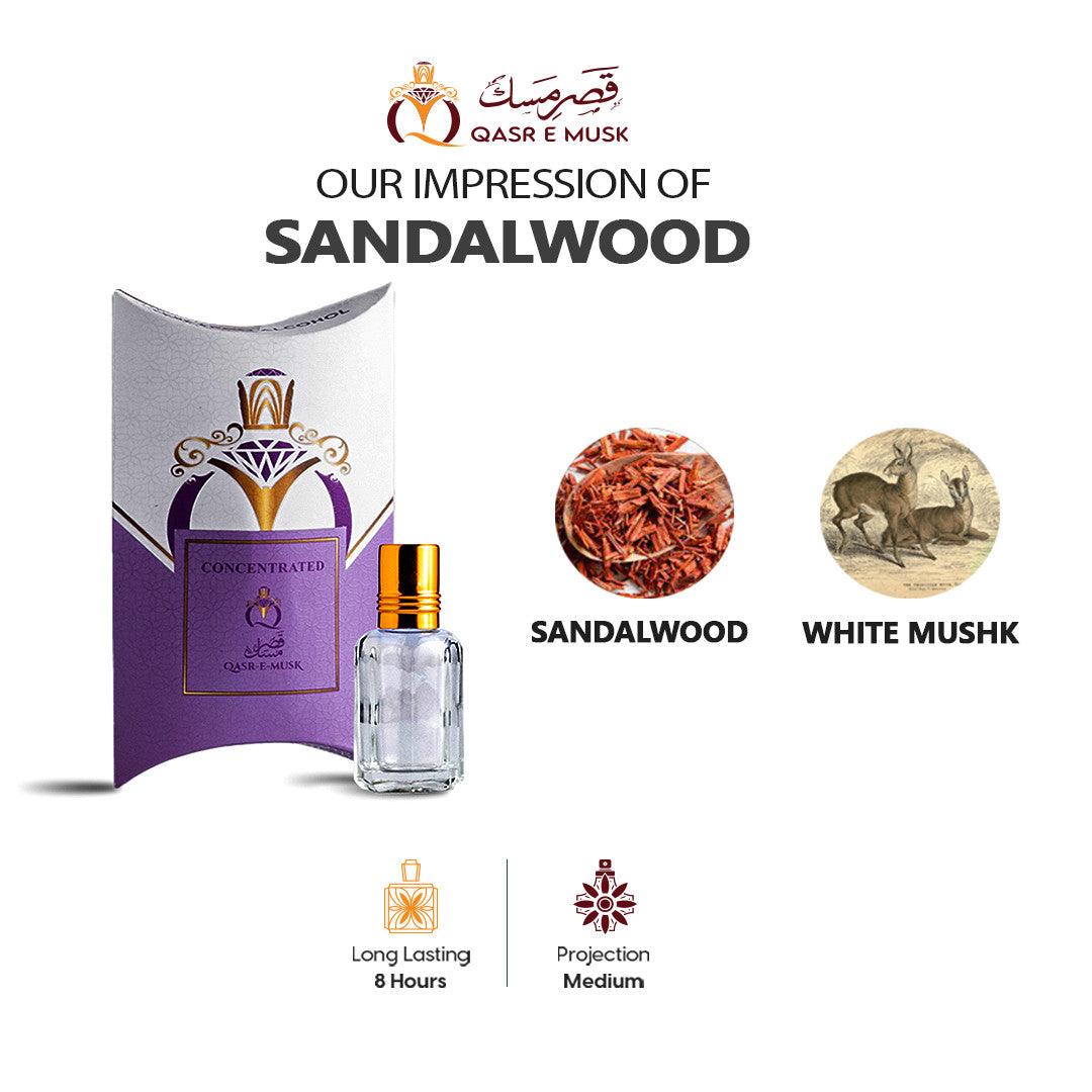Sandalwood by QASR-E-MUSK is a rich and sophisticated scent. Softly woody Smooth and creamy earthy Sensual Sightly musky Slightly sweet, and Slightly spicy.